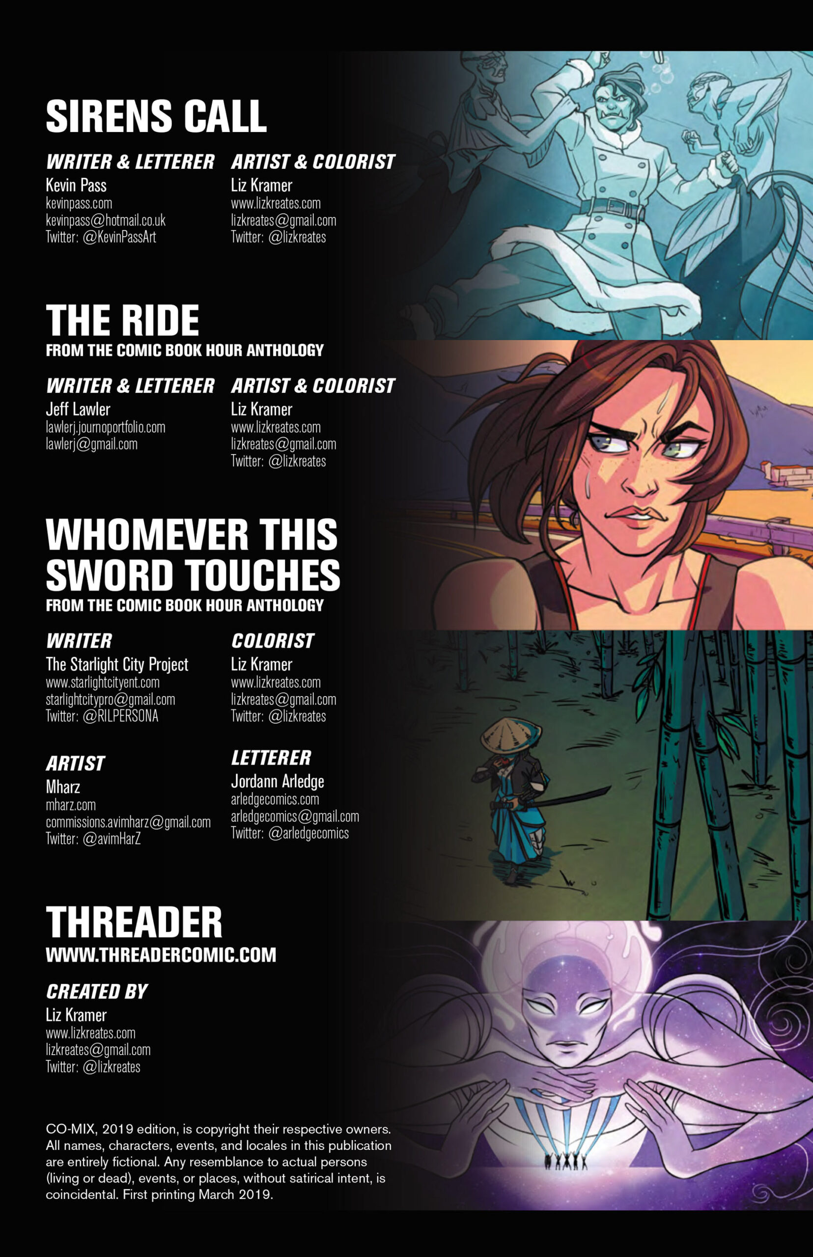 I was initially brought on by the editor, Noah Sharma, to do prepress to adjust dark colors for print and then was additionally hired to layout the comic book pages, create graphics such as sword-themed end-paper, and layout the credit and biography pages.