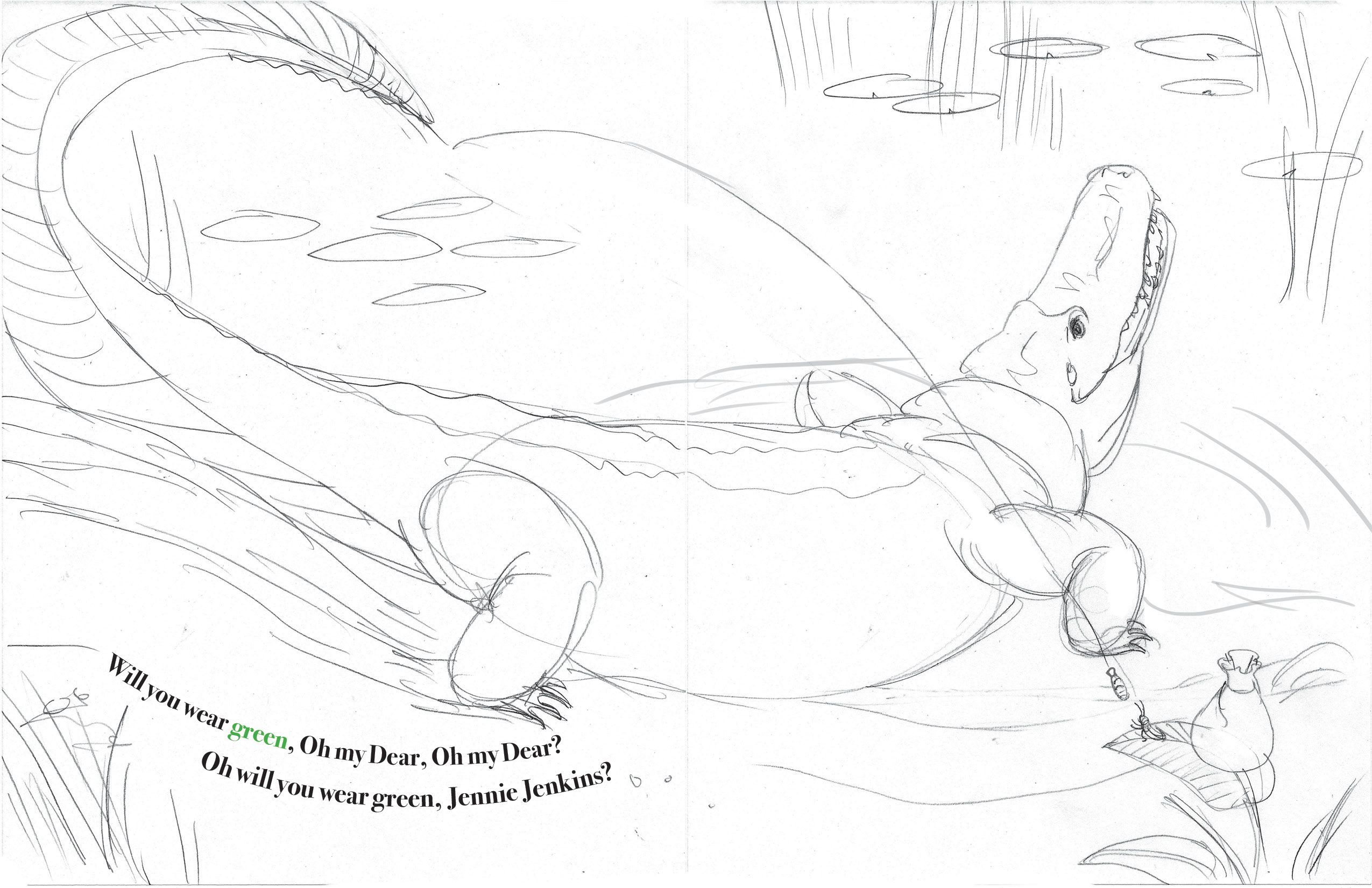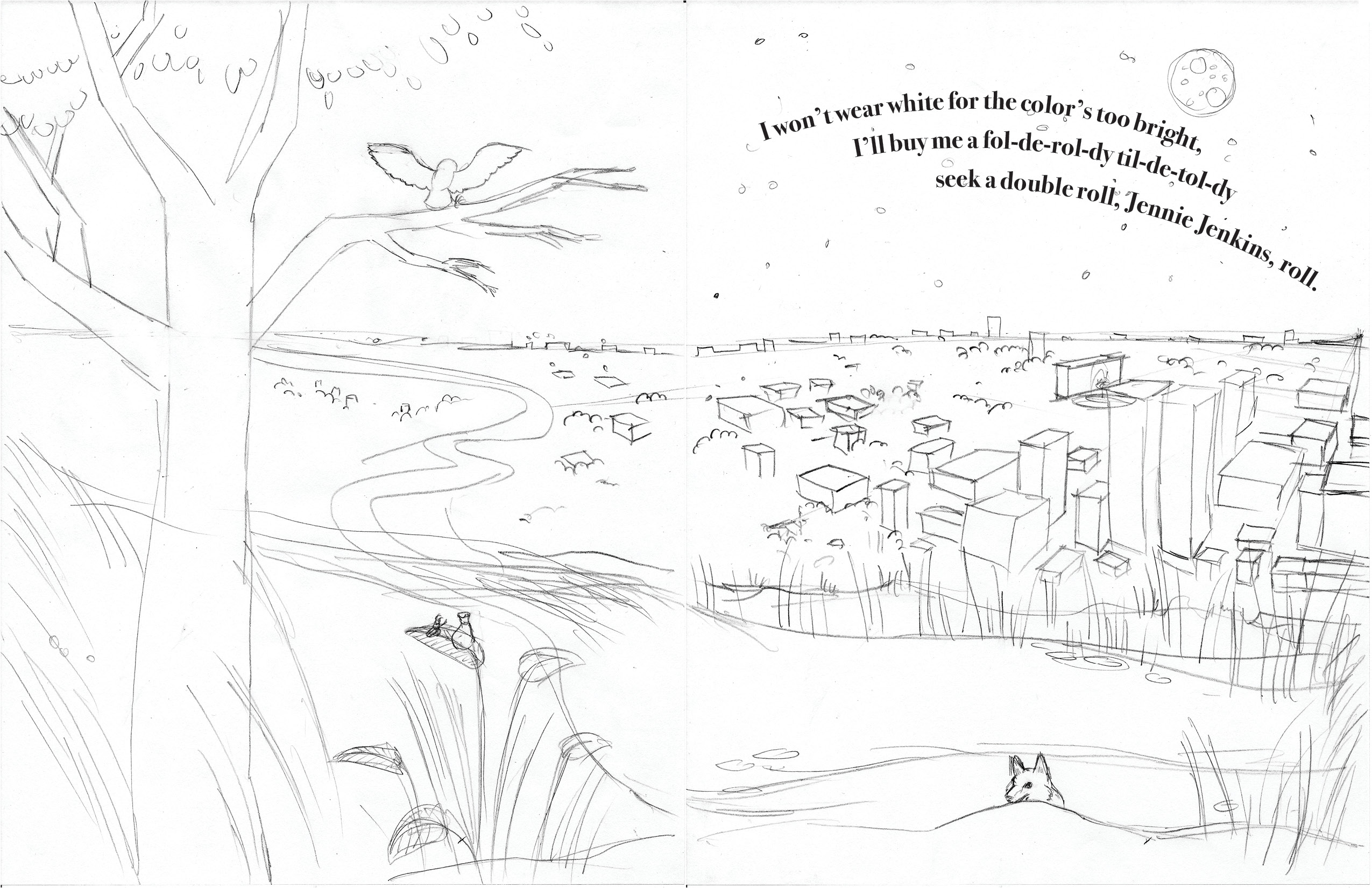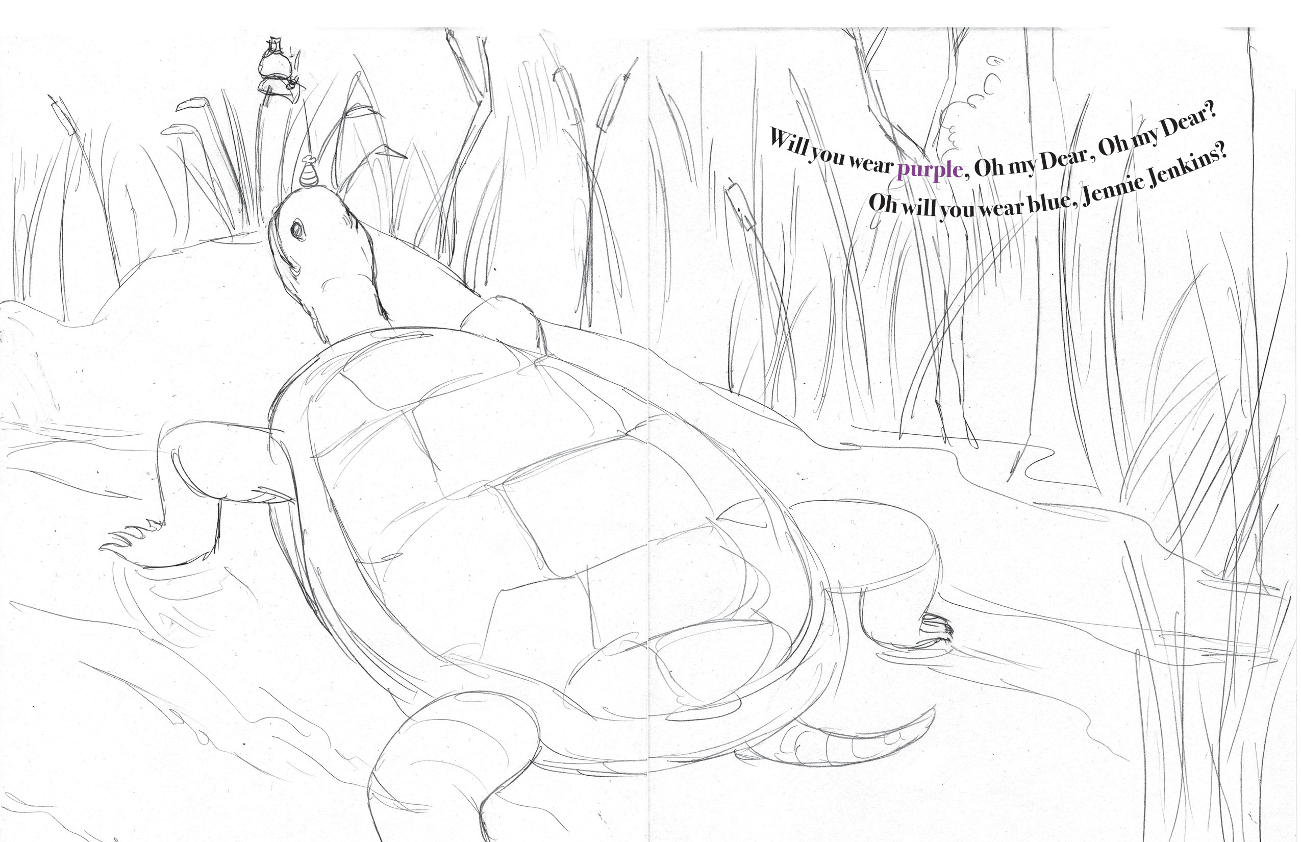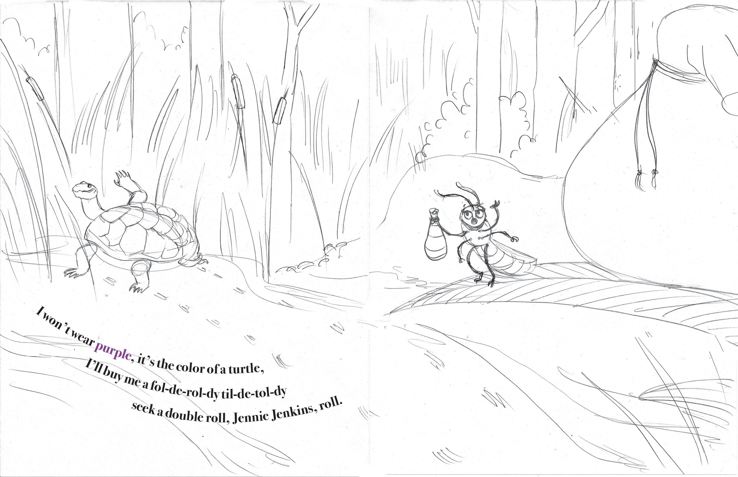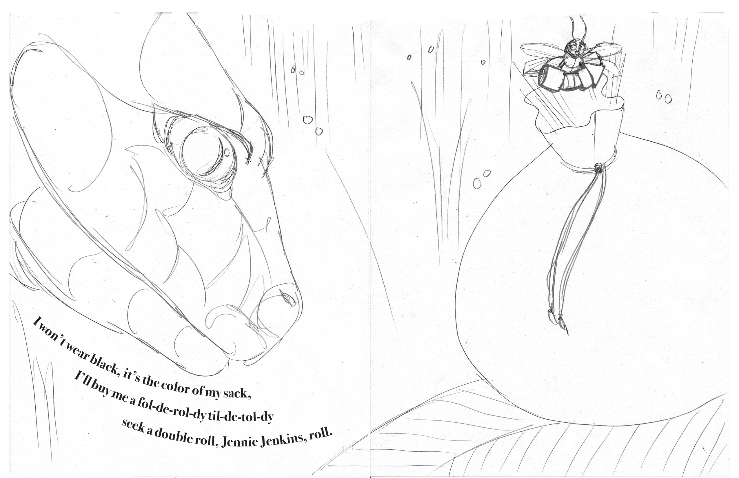 This example was created as book dummy for a picture book pitch adaptation of the song “Jennie Jenkins”.